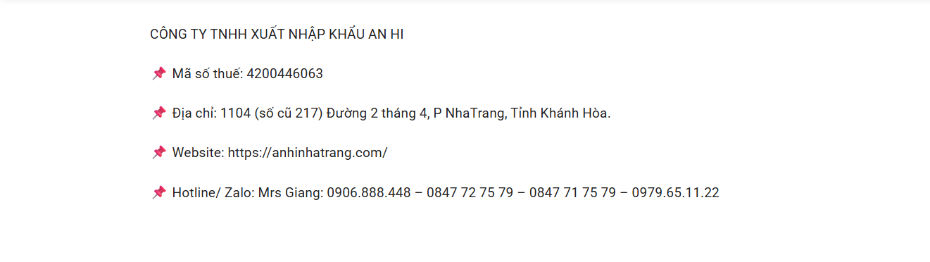 An Hi là doanh nghiệp chuyên xuất nhập khẩu và phân phối các sản phẩm nông sản, thực phẩm chế biến và đặc sản vùng miền, với thế mạnh là các mặt hàng chất lượng cao từ Khánh Hòa và khu vực Nam Trung Bộ. Với định hướng phát triển bền vững và mở rộng thị trường quốc tế, Công ty TNHH Xuất Nhập Khẩu An Hi cam kết mang đến những sản phẩm sạch, an toàn và giàu giá trị dinh dưỡng.